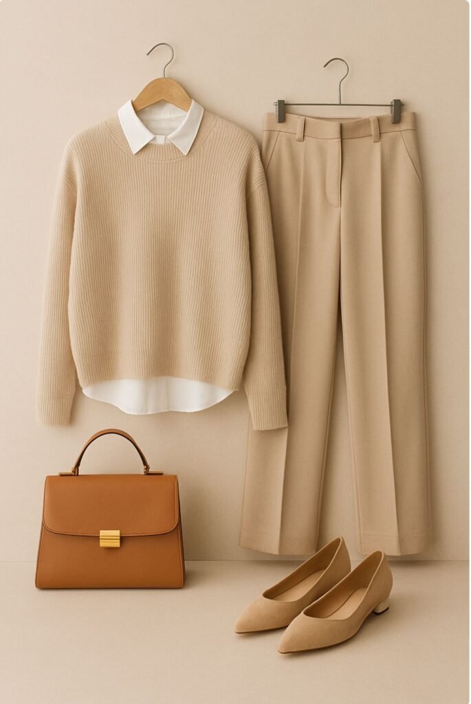 • Soft neutrals for cozy, layered outfits